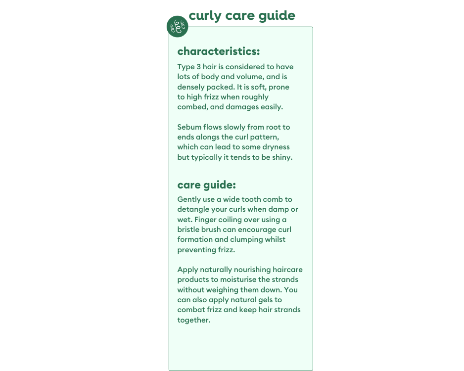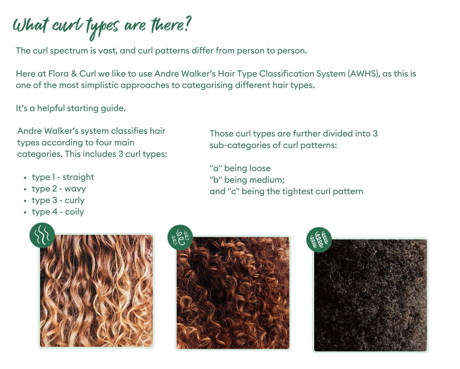 Here at Flora & Curl we like to use Andre Walker’s Hair Type Classification System (AWHS), as this is one of the most simplistic approaches to categorising different hair types. It’s a helpful starting guide.