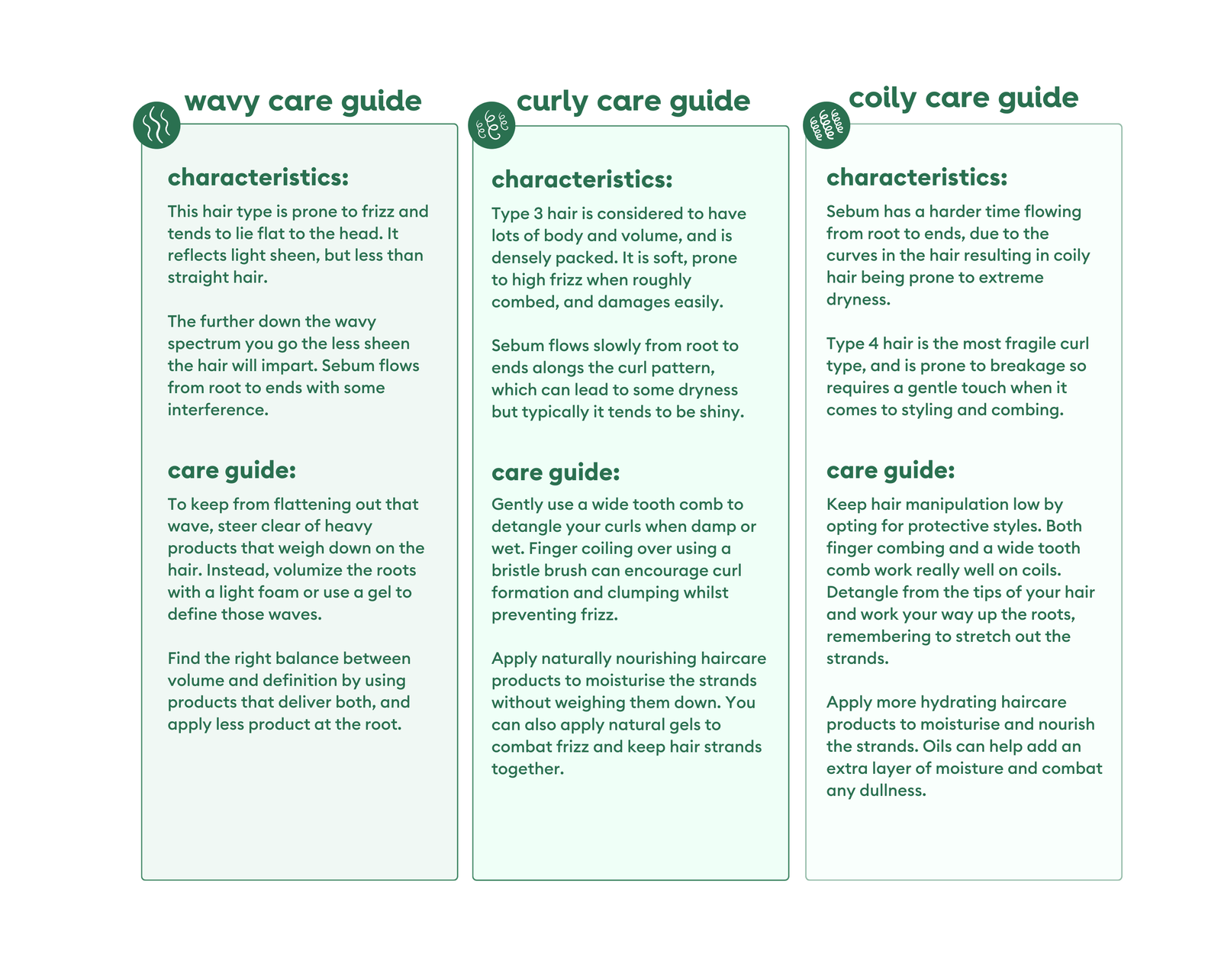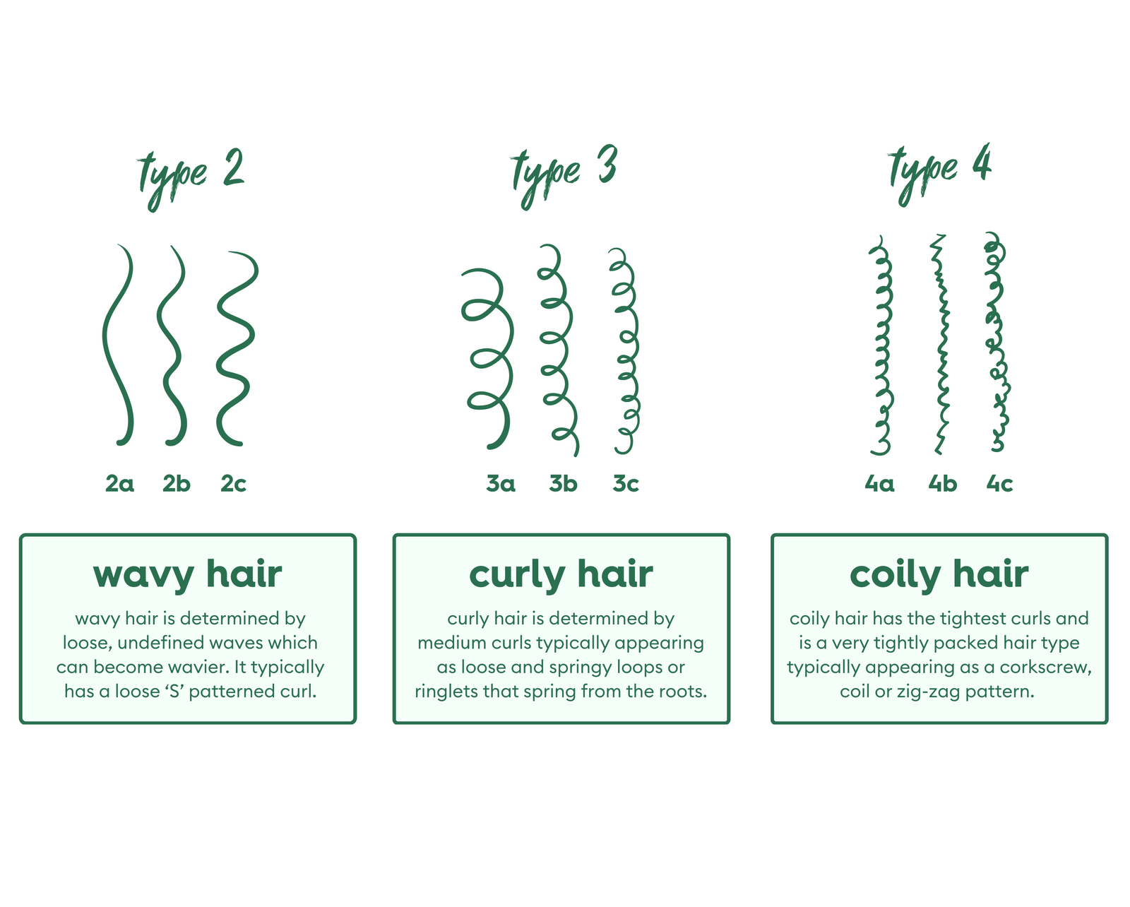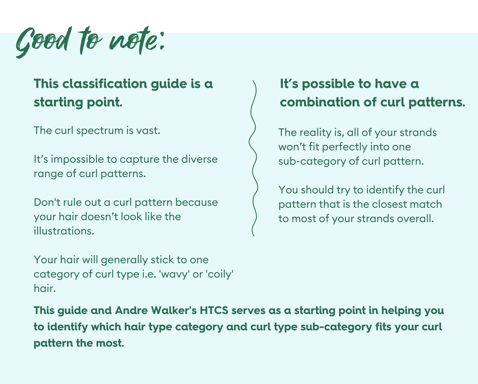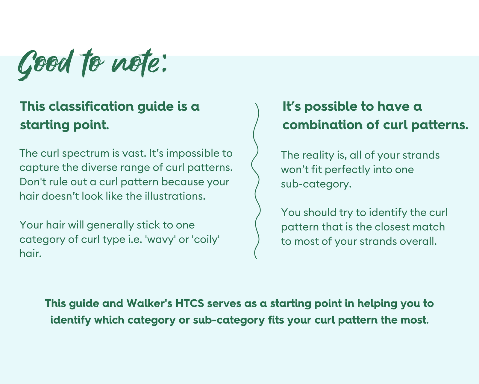 Those 3 curl types are further divided into 3 sub-categories of curl patterns: